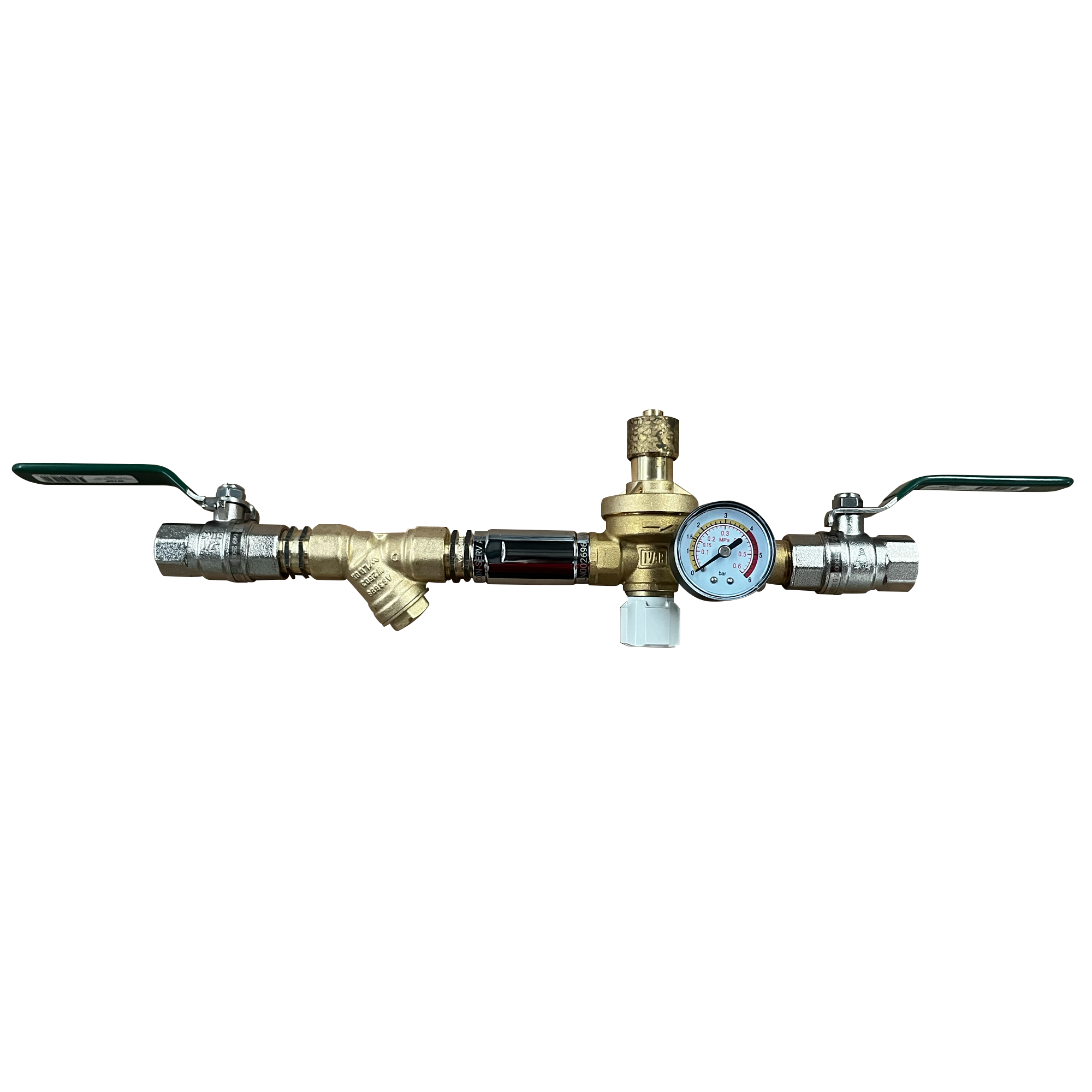 2 Ball Valves + 1 Refilling valve + 1 Anti pollution valve + 1 StrainerEasy valve train system made up...